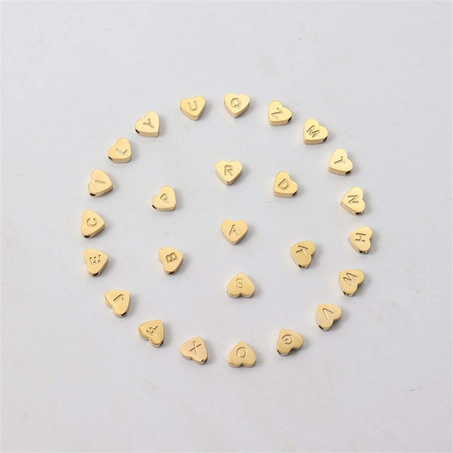 Damen Perlenarmband mit Buchstaben – Herz Anhänger in Gold Optik