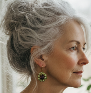 Damen Ohrhänger Goldfarben – Runde Ohrringe mit Grünem Stein-Design und Rotem Akzent
